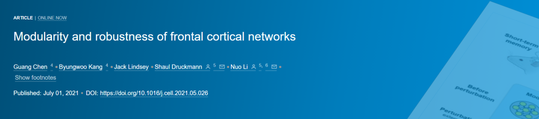 7月1日,由美国贝勒医学院的陈广博士、李诺博士与斯坦福大学的博士生Byungwoo Kang和Shaul Druckmann博士等合作,在Cell发表了一篇名为「额叶皮质网络的模块化和鲁棒性」(Modularity and robustness of frontal cortical networks)的文章。